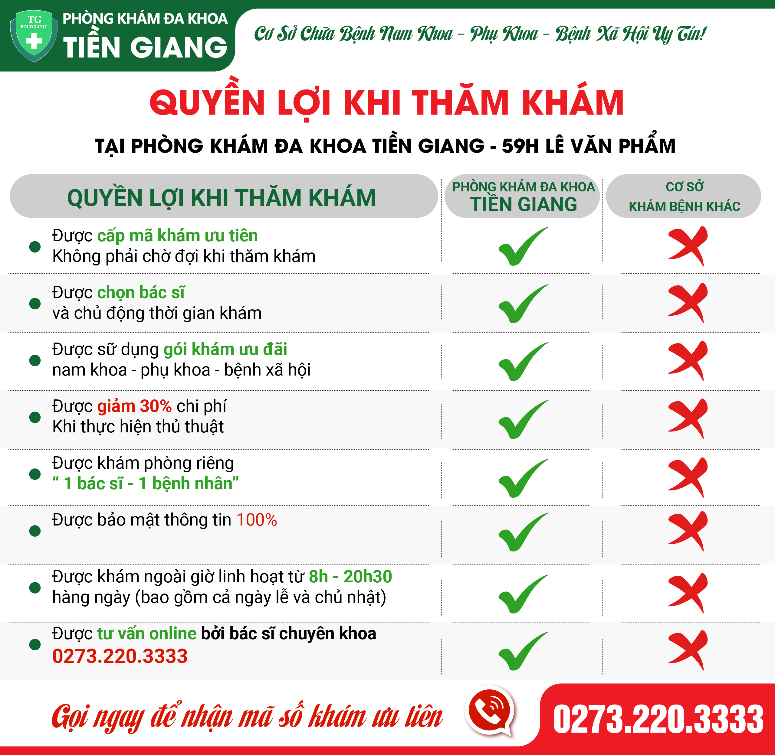 • Ưu tiên khám trước, không cần ngồi đợi lâu và chen chúc.